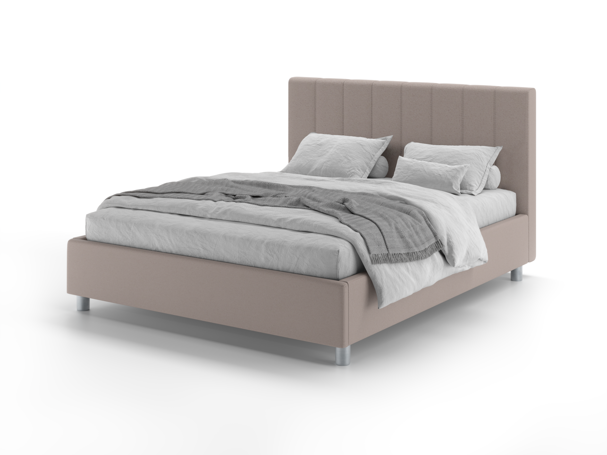 Стильная минималистичная кровать с декоративными строчками на изголовье. Простая геометрия в дизайне кровати не оставит равнодушными ценителей лаконичности и простых форм. Мягкие царги и углы у изножья уберегут от травм