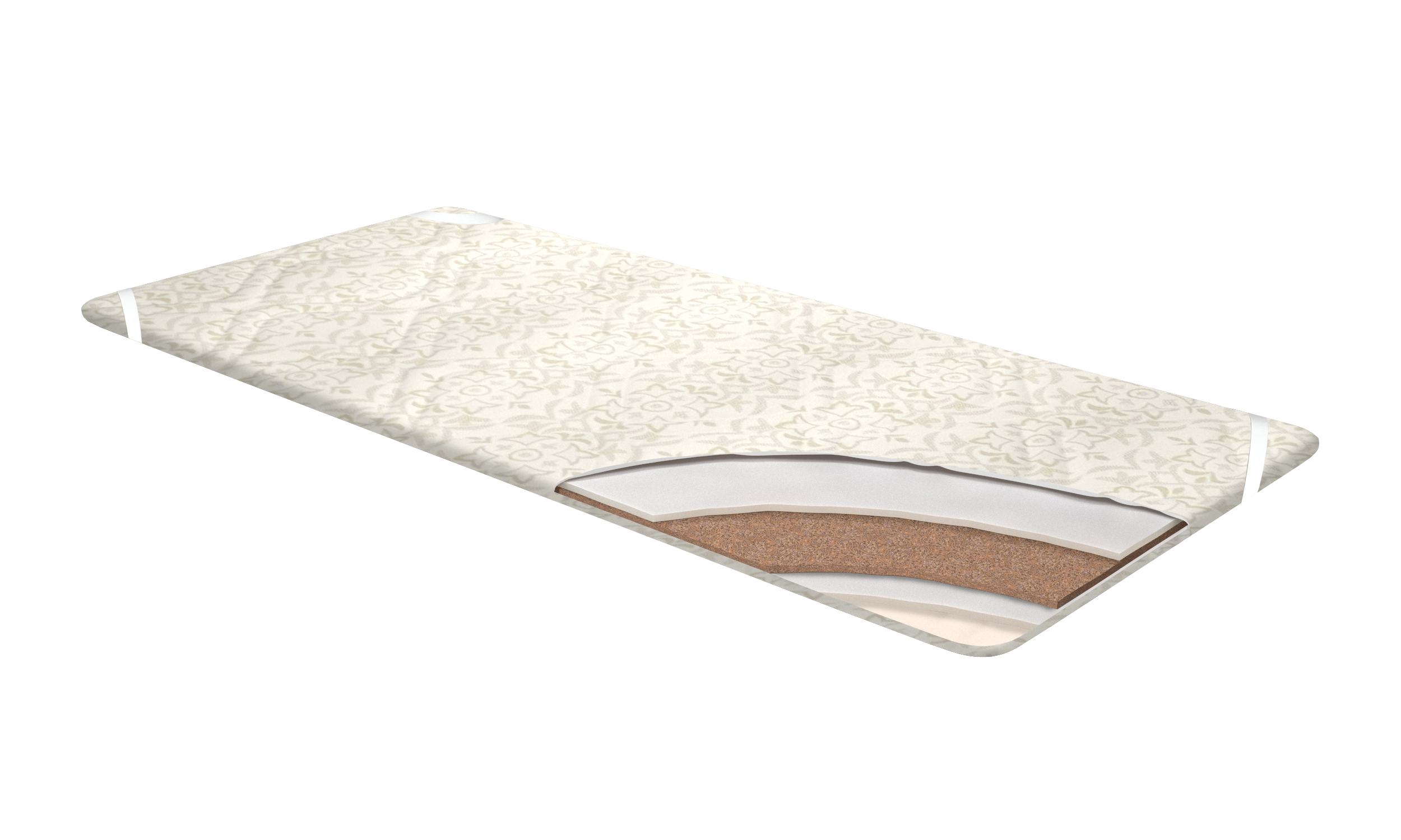 Служит для защиты и изменения жесткости спальной поверхности матраса. Выравнивает поверхность матраса. Чехол наматрасника изготавливается в трикоте или трикотаже, по желанию. Компания-производитель оставляет за собой право вносить конструктивные изменения в модели,  а так же изменять вид ткани цельнозашивного чехла в целях улучшения внешнего вида, функционала и потребительских качеств изделия. Состав:  Кокосовая плита 10 мм, пена 10 мм